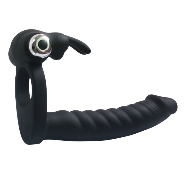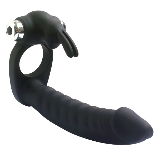 Насадка с кольцом, при помощи которого фиксируется на половом члене мужчины! Клиторальный стимулятор с милым зайкой обещает самую волнительную стимуляцию клитора, в то время как женщина ощутит полную заполненность вагины и ануса, одновременно!
