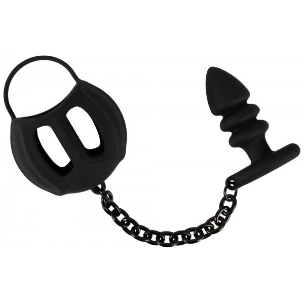 Изумительный девайс для самого яркого мужского удовольствия - насадка на мошонку и супер рельефная анальная пробка "Black Velvets"!