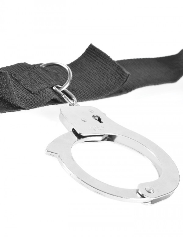 Выполнена фиксация в виде черных нейлоновых ременей. Ремни крепятся, как на спинку кровати, так и под матрас. D-образные кольца на ремнях позволяют прикрепить наручники, которые входят в комплект, а также другие девайсы!