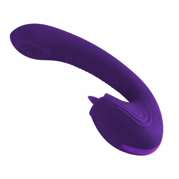 Увеличенная и изогнутая головка девайса создана для поиска и активного массажа G-точки, рельефный ствол интенсивно стимулирует вагинальную трубку, а клиторальный стимулятор в виде малюсенького язычка трепетно ласкает снаружи, увеличивая градус возбуждения! Язычок двигается вверх-вниз максимально имитируя оральные ласки